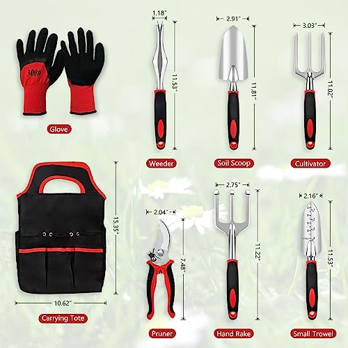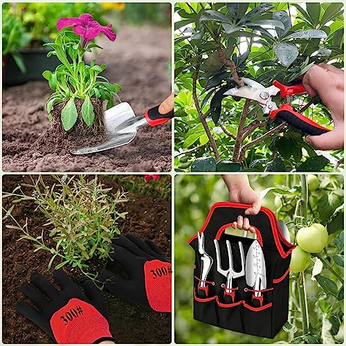 - 【Advanced Gardening Tools】- The gardening tool set includes a large trowel, small trowel, cultivator, hand rake, weeder, pruning shears and an oxford cloth carrying bag to pack all your tools, our gardening tool set is made of Made of high-quality aluminum alloy to ensure the tool is strong, durable and resistant to rust and corrosion. The aluminum alloy material is lightweight and easy to handle, reducing hand fatigue during use and making it easier to trim your garden.