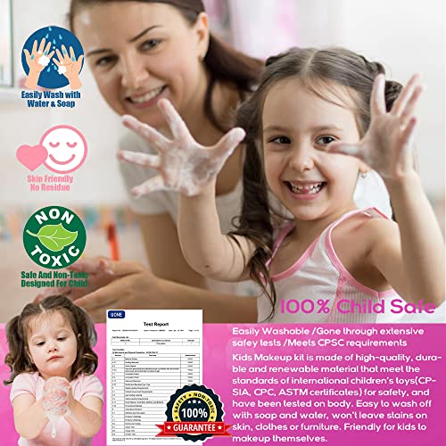 • 🌸🌸【Washable Makeup X 100% Child Safe】:Kids makeup kit for little girls set use water-soluble formula, no added preservatives, mild and non-irritating, no burden on the skin.Kids Makeup Kit Toys for Girls The smooth exterior design makes it not easy to be damaged and protect children’s soft hands, Easy to Wash, Non-Toxic. Meet the standards of international children’s toys(CPSIA, CPC, ASTM certificates)birthday gifts, a Christmas gift, Easter toys,toys for 5+ year old girls