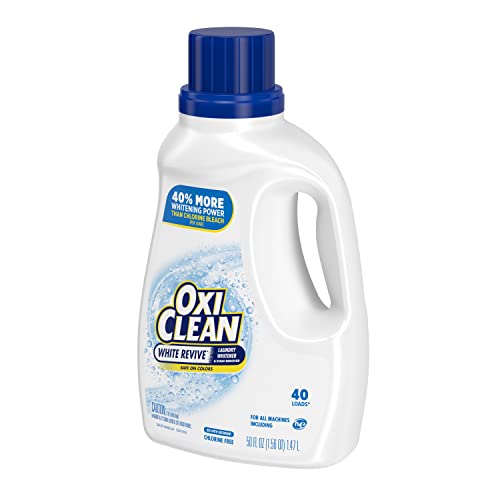 Details: Revive dingy whites and remove tough stains with OxiClean White Revive Laundry Whitener and Stain Remover Liquid. This laundry detergent booster whitens whites 40 percent better than chlorine bleach per load without the risk of chlorine spills and splatters. When used as directed, this oxygen-based, water-activated, color-safe stain remover for white clothes removes stains, and brightens and revives machine-washable white clothes, canvas shoes, sheets, t-shirts and more, all without the harsh smell of chlorine bleach. For best results, presoak clothes in a mixture of this fabric whitener and water following label directions. You can also pretreat stains by applying this stain remover liquid directly to the stain, then washing as usual. Ideal for HE and standard washing machines, just pour this laundry detergent booster along with your regular laundry detergent, following label directions, as a chlorine bleach alternative whitener for clothes. The 66 fl oz bottle has enough laundry booster for many loads, so you can wear white fearlessly. From stain removers and laundry boosters to household cleaners and much more, OxiClean offers a product to fit your needs.